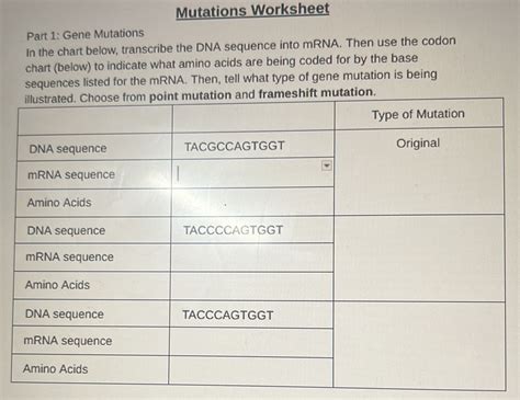 Web mutations worksheet part 1: Then use the codon chart (below). Which type of mutation is responsible for new variations of a trait?
