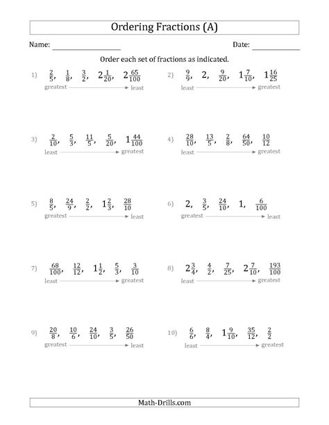 Ordering Fractions Worksheet With Answers. Web order the numbers from least to greatest. 1 is converting improper fractions to mixed.